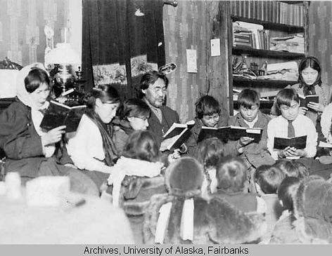 Willaim Loola reading at bible class, UAF 1985-72-29